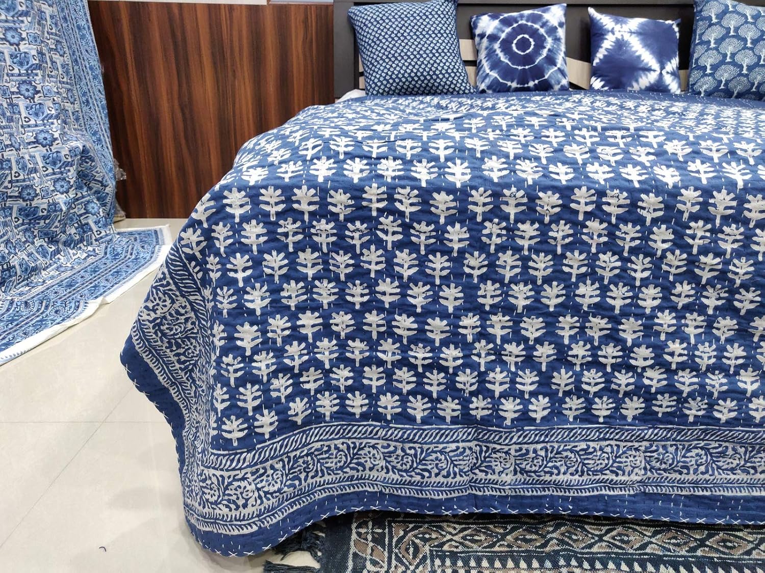 Amazon Com Blue Kantha Quilt Queen Size Hand Stitch Kantha Ajrakh