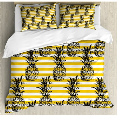 Grunge Duvet Cover Set Retro Striped Background With Pineapple