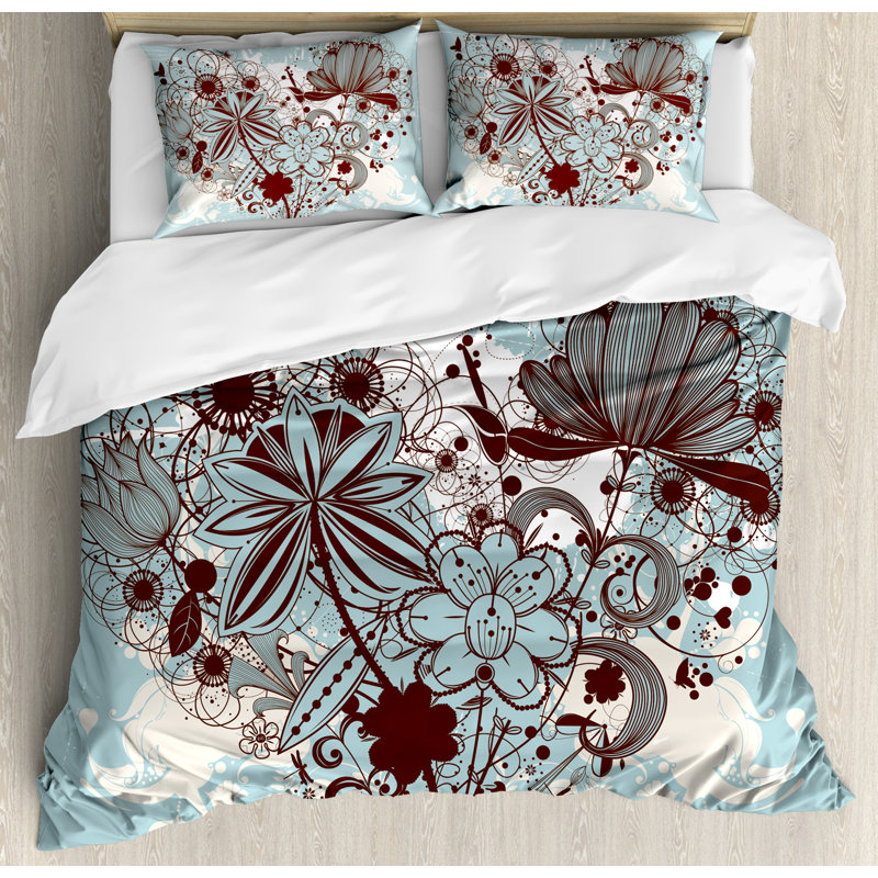 East Urban Home Grunge Murky Floral Dragonfly Background With