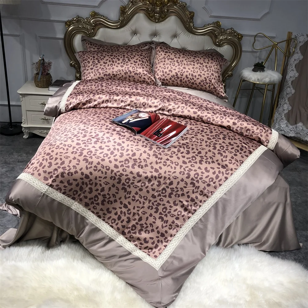 Leopard Print Lace Patchwork Bedding Set Twin Queen King Size
