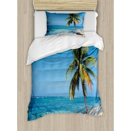 Cacun Duvet Cover Set Image Of A Single Palm Tree On The Beach