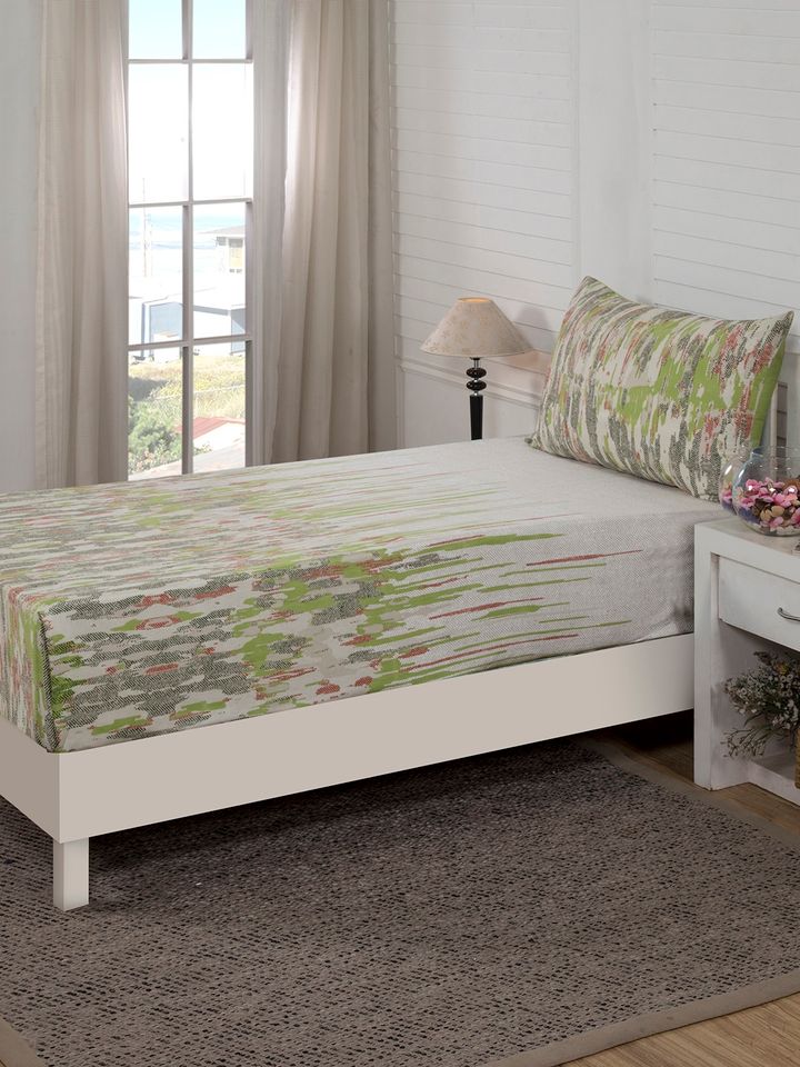 Buy Maspar Green Abstract Flat 210 Tc Cotton 1 Single Bedsheet