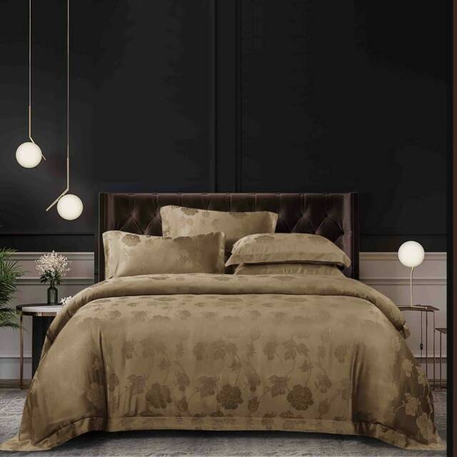 Bedcover Set Mewah Bahan Kingkoil Sutera Jacquard Motif Bunga