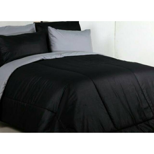 Bedcover Polos 160 X 230 Cm Katun Hitam Abu Kombinasi By Marveq0h8
