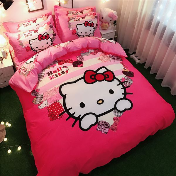 Bedding Set 100 Cotton Lovely Cartoon Pink Series Love Hello